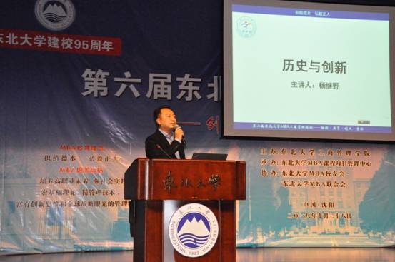中国罕王控股有限公司董事会主席、北京大学校友会常务理事、北京大学沈阳校友会会长杨继野先生报告的主题是《历史与创新》。杨继野先生抓住了“历史”与“创新”两个关键词,具体生动地从欧美宗教谈到中国传统文化和科学及需求的关系,对禁锢创新的原因、创新的内涵、创新具体案例等方面进行了剖析,为产业技术的创新发展提供了新颖的思路和启发。