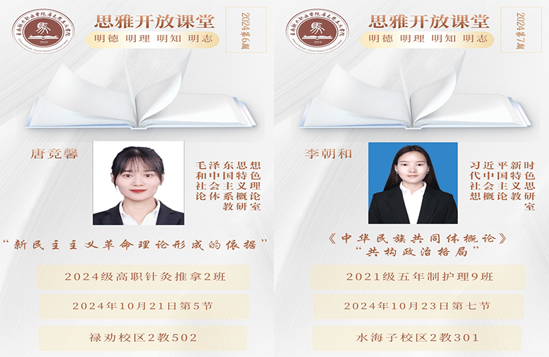为进一步推进思政课教育教学改革,落实“立德树人”根本任务,提高应用型人才培养质量,扩大教育教学开放程度,增强教师教学交流与学习,加强教学监督与管理,马克思主义学院于十月组织开展“思雅开放课堂”公开课观摩与研讨暨...