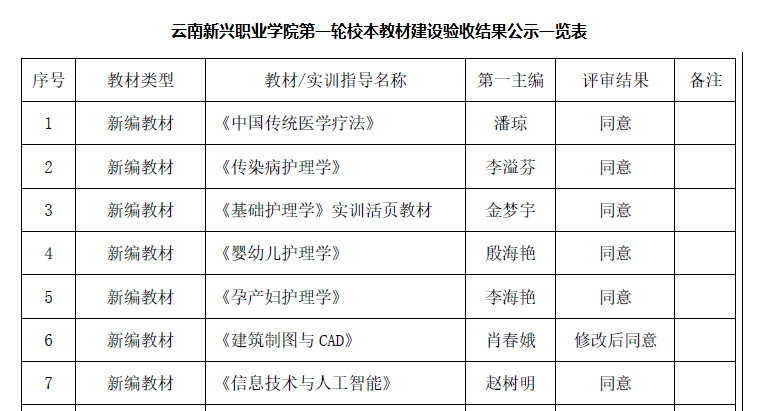 各部门、二级学院、管委会:根据《beat365正版唯一官网必一关于组织开展校本教材编审工作的通知》要求,结合学校专业建设规划和课程建设需要,学校组织开展了校本教材编审评审工作,经各部门积极申报,学校教材建设指导委员会专家评审...