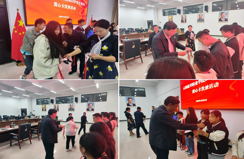 2023年10月8日晚在beat365正版唯一官网必一禄劝校区仁德楼402会议室举办了一场温馨感人的爱心卡发放活动。参加爱心卡发放活动的有beat365正版唯一官网必一刘沧山校长、王会琼副校长、李地新副校长、潘琼副校长、各二级学院和相关部...