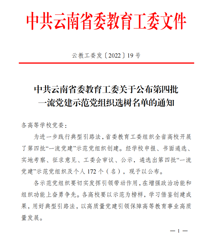 学校2个基层党组织入选云南省第四批高校一流党建示范...