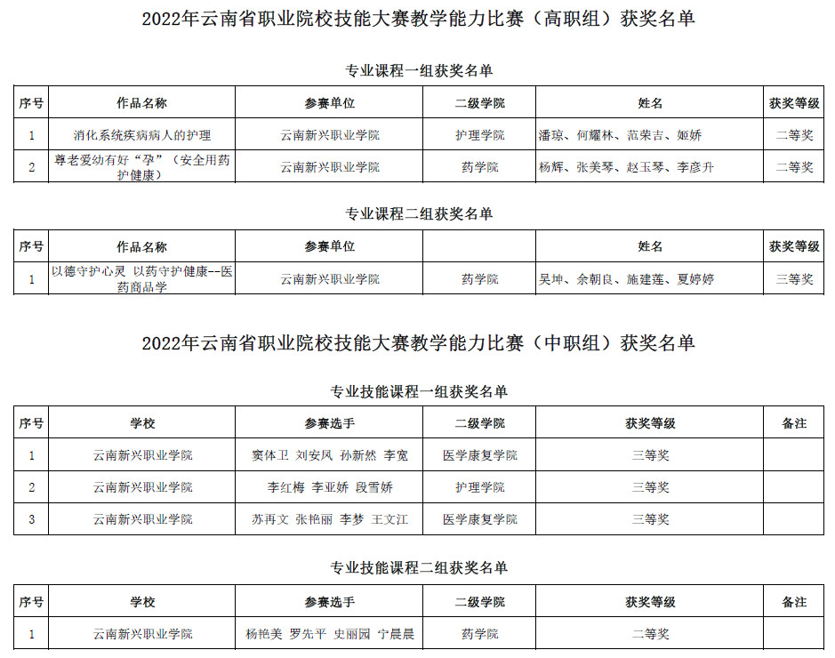 2022年云南省职业院校技能大赛教学能力比赛共有来自45所高职院校的334个团队、62所中职院校的234个团队参加了比赛。经各地各职业院校推荐,专家网络评审、现场决赛,高职组共评出一等奖31项、二等奖59项、三...