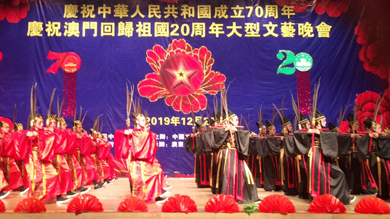 2019年12月20日,学院八佾舞团在李地新常务副院长(团长)、李艳梅副院长(副团长)的带领下参加庆祝中华人民共和国成立70周年,庆祝澳门回归祖国20周年大型文艺晚会。在澳门旅游塔会展中心剧院,学院表演的《八佾...