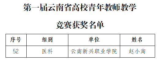 6月23日,由云南省总工会、云南省教育厅、云南第省教育卫生科研工会主办的第一届云南省高校青年教师教学竞赛落下帷幕。近日,竞赛结果揭晓,经过激烈角逐,beat365赵小淘老师荣获三等奖。本次竞赛由省总工会、省教育厅、省教育...