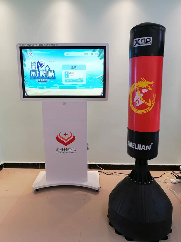 产品组成:击打宣泄仪机柜1台、移动式无线击打靶1个、43寸触控液晶一体机1台、手套1副。