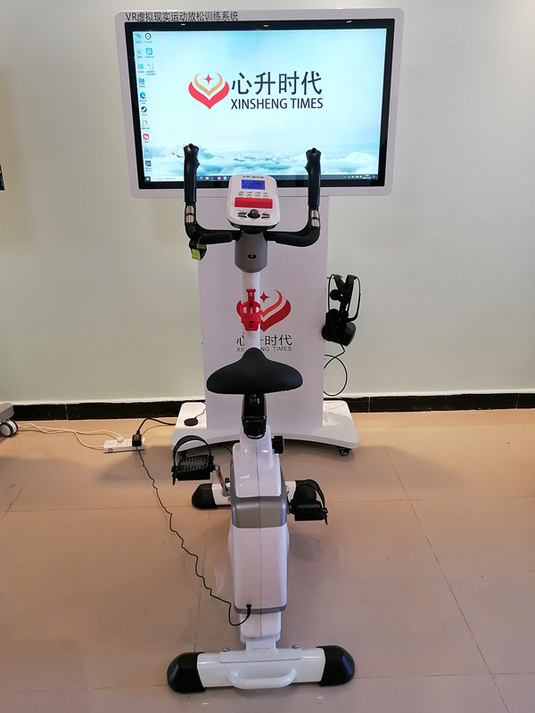 产品组成:运动单车1辆、VR显示头盔1个、43寸运行一体机1台、VR运动放松训练系统1套、心率采集器1个。