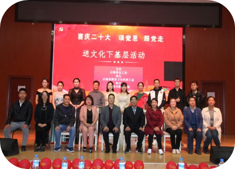 2022年10月26日,由云南省总工会承办、云南省教育卫生科研工会协办的“喜庆党的二十大颂党恩跟党走”送文化下基层活动在beat365正版唯一官网必一开展。通过活动充分展示云南省总工会、云南省教育卫生科研工会对基层职工的重视...