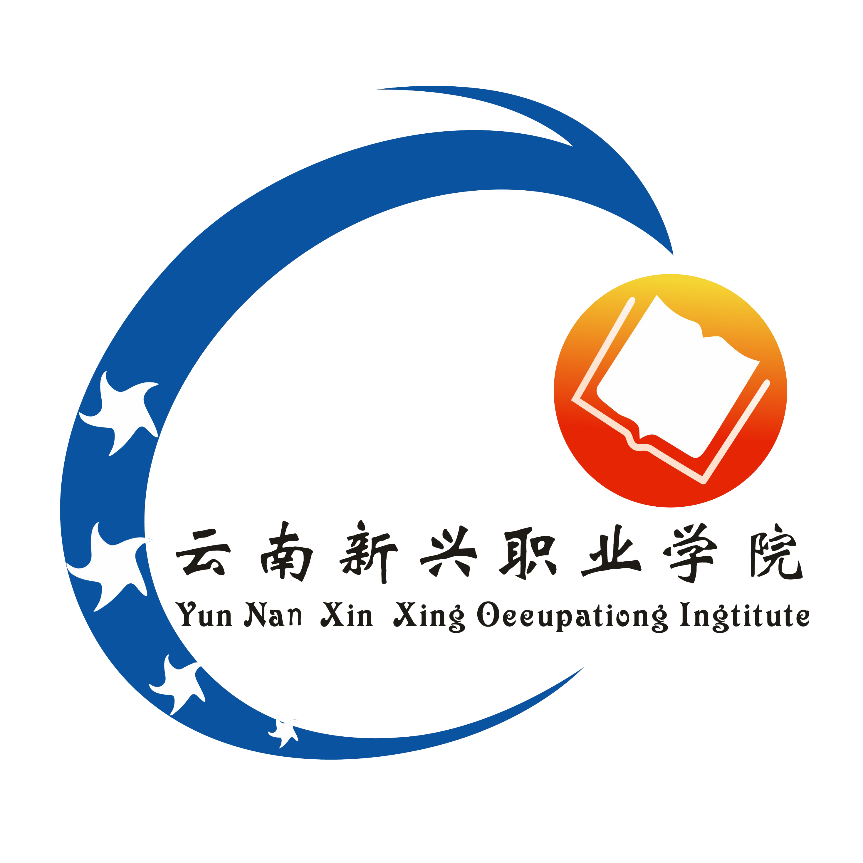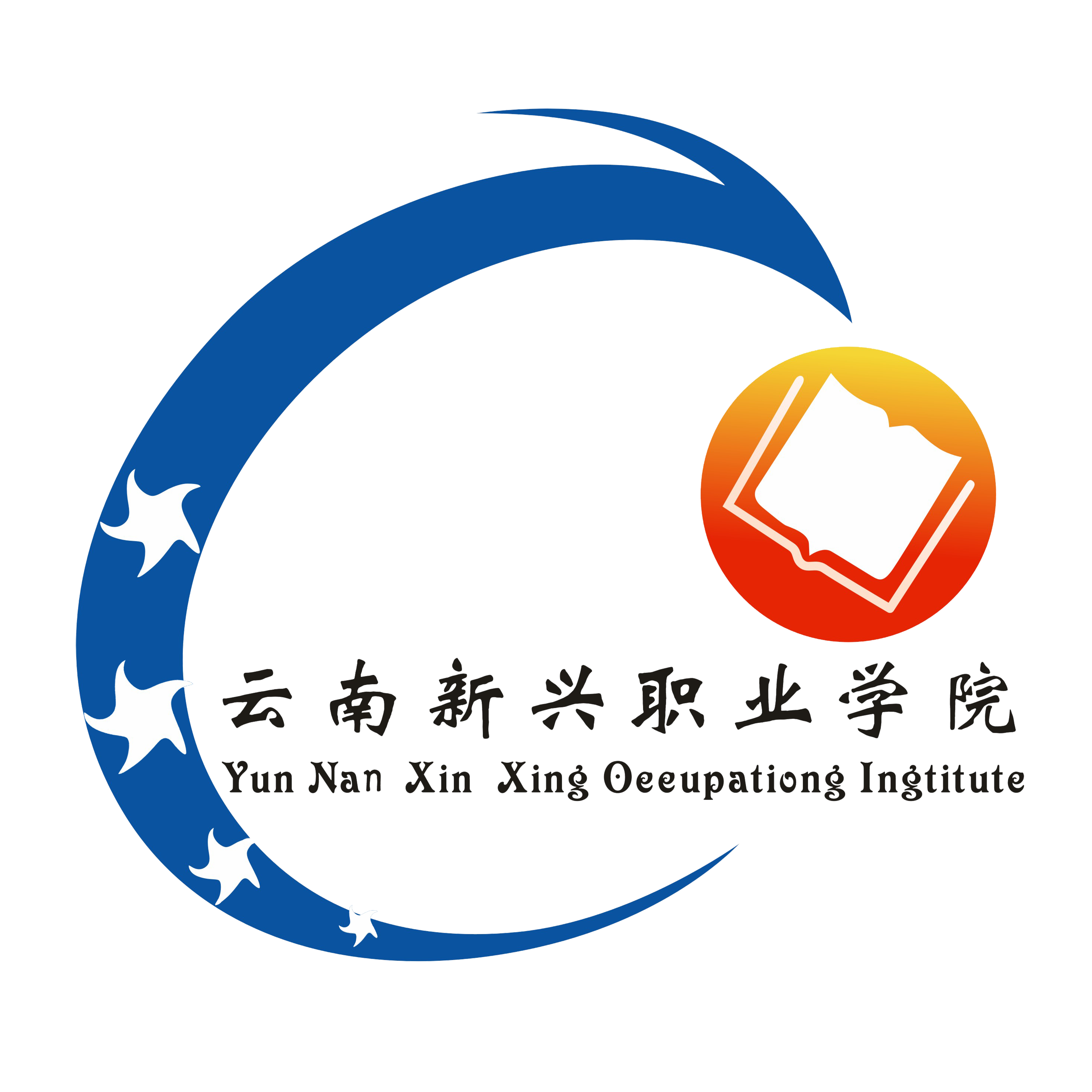校标为书本、太阳、凤凰、四个五角星和汉字“beat365正版唯一官网必一”、英文“Yun Nan Xin Xing Occupations Institute”组合而成。