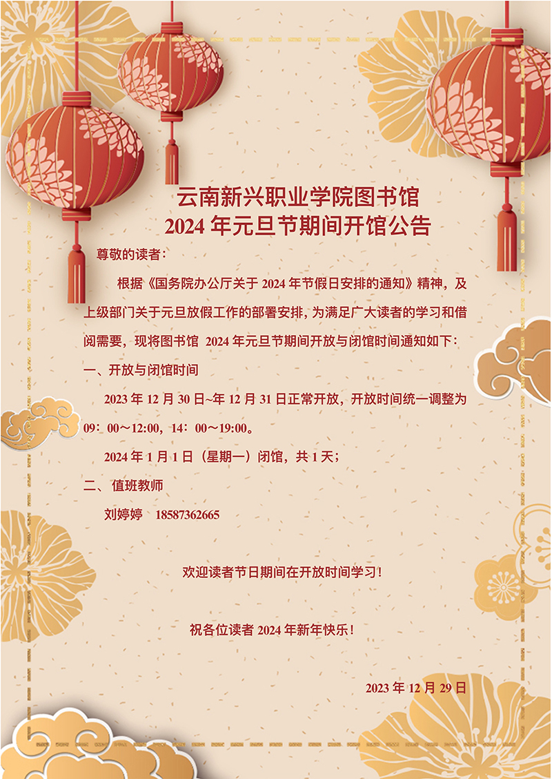 beat365正版唯一官网必一图书馆2024年元旦期间开馆公告