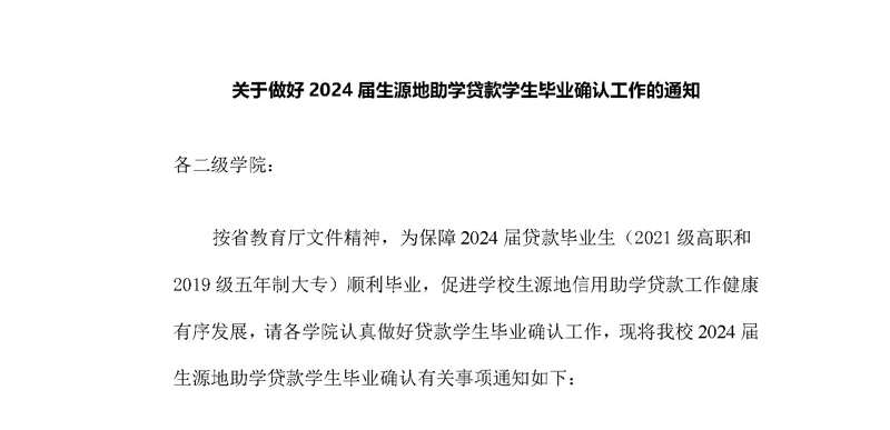 关于做好2024届生源地助学贷款学生毕业确认工作的...