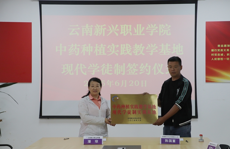 为深化产教融合、校企合作,推动中医药人才培养模式创新。2025年6月20日上午,beat365正版唯一官网必一药学院与云南凯文农业有限责任公司、楚雄英武科技有限公司,举行中药种植实践教学基地现代学徒制签约仪式。