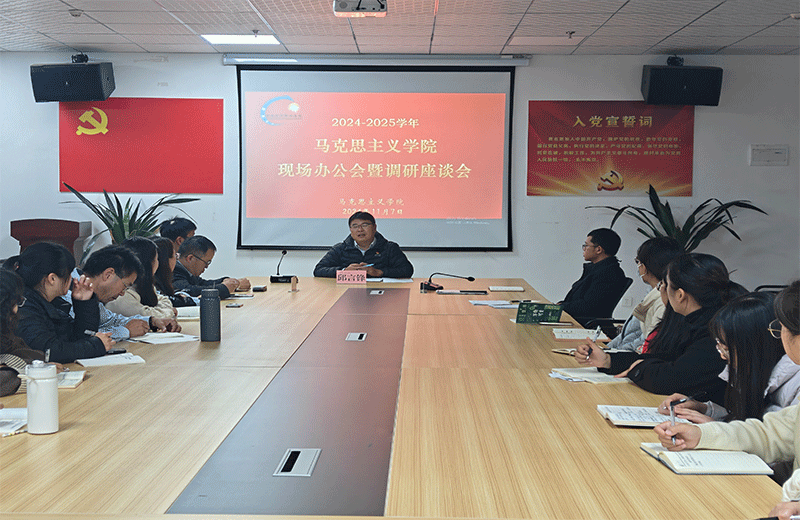 2024年11月7日下午,学校党委书记邱言锋到马克思主义学院召开现场办公会暨调研座谈会,与马克思主义学院全体思政课教师进行座谈交流,深入了解学院发展情况并进行现场办公。