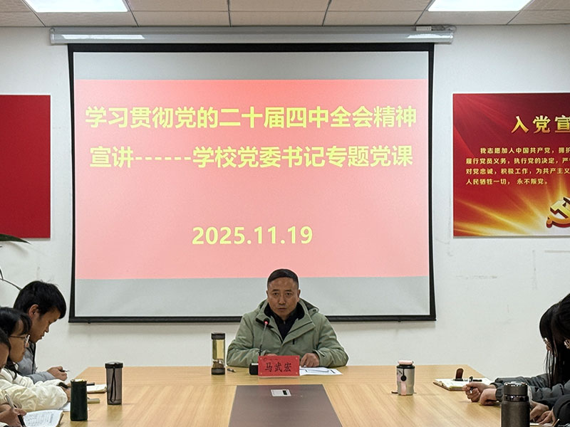 为深入学习贯彻党的二十届四中全会精神,精准把握“十五五”规划战略部署对职业教育的新要求,推动会议精神在学院落地生根。11月19日,学校党委书记马武宏赴马克思主义学院开展学习贯彻党的二十届四中全会精神专题党课。