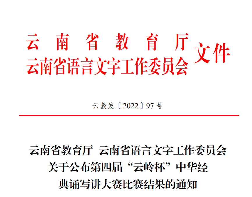 第四届“云岭杯”中华经典诵写讲大赛·“书香彩云南”经典诵读大赛获奖名单 职业院校学生组(含中职、高职学生) |