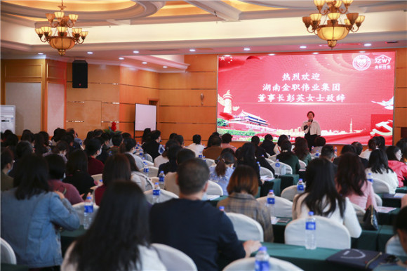 湖南省育婴师协会会长、湖南金职伟业集团总裁潘建明对下午老师们提出的各项疑惑和建议做了答复和总结,并表示金职伟业将迎合更多的行业和企业,将社会的师资及考评员培养起来,以形成更加广大的平台,最后他希望在座各位老师多提意见,多交流,携手金职伟业共推幼儿照护事业的发展。