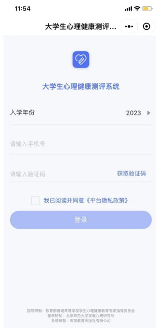 打开微信,搜索小程序“学生心理测评平台”点击进入,如下图: