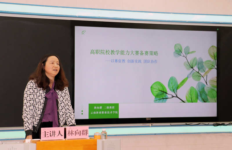为深入贯彻落实职业教育改革精神,全面提升教师教学创新能力和信息化教学水平,助力教师教学能力提升,更好的备战2025年省级职业院校教师教学能力比赛,2025年3月26日学校邀请了云南林业职业技术学院副校长林向群二级教授到校开展主题为“高职院校教学能力大赛备赛策略”的专题讲座。讲座设主会场和分会场,主会场设在护理学院智慧教室,分会场分别设在禄劝校区110报告厅和水海子校区多功能厅,全校350余名专任教师及教学管理人员通过线上和线下的方式参加学习,讲座由学校潘琼副校长主持。