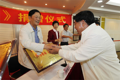 捐赠仪式上为beat365院长关祥祖等来自全省62家参与捐书善举的企事单位授牌表彰