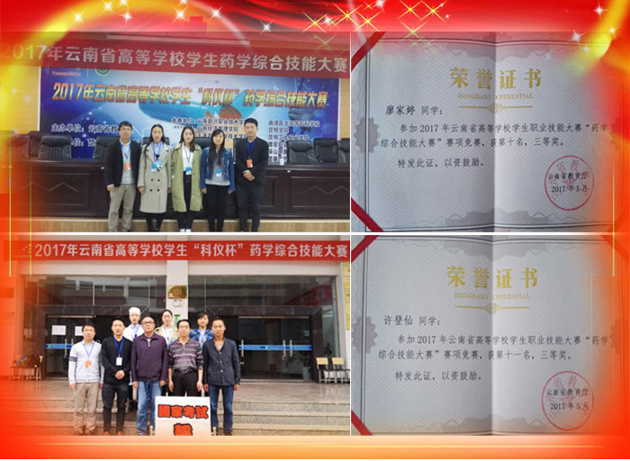 2017年4月14日-4月17日,学院药学系学生参加2017年云南省“科仪杯”药学综合技能大赛,参赛选手荣获三等奖2名(廖家婷、许登仙)。