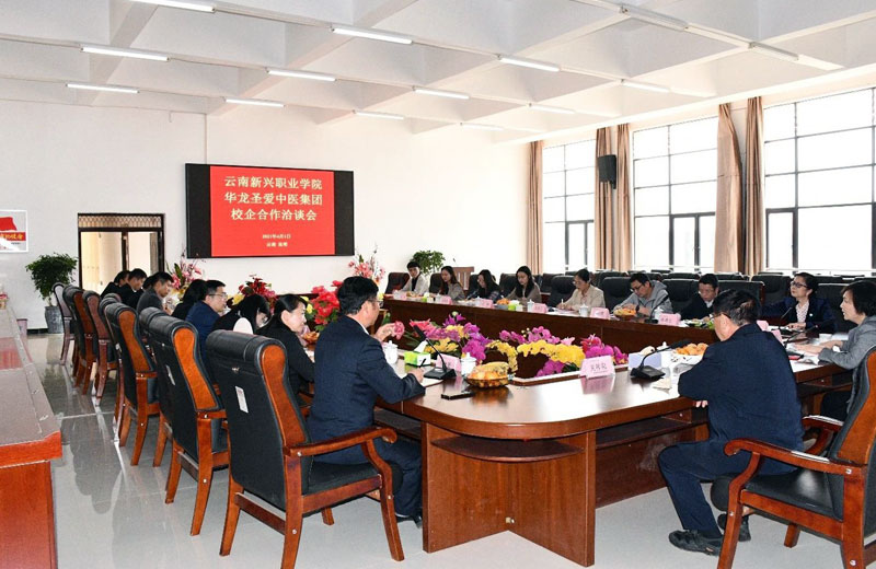 2021年4月1日上午,beat365正版唯一官网必一与华龙圣爱中医集团就校企合作、产教融合共建药学院GMP; 实训基地相关事宜在学院新校区仁德楼会 议室举行了洽谈。华龙圣爱中医集团董事长刘琼、副总裁代树莲、中医药研究院生产部经理郝晓根、研发部经理王加义;云南中医药大学教授陈凌云;beat365正版唯一官网必一董事长关祥祖、常务副院长李地新、副院长潘琼、副院长李艳梅、董事长助理高大鹏、组织部部长孙克松以及各二级学院负责人参加了会议,会议由beat365正版唯一官网必一常务副院长李地新主持。