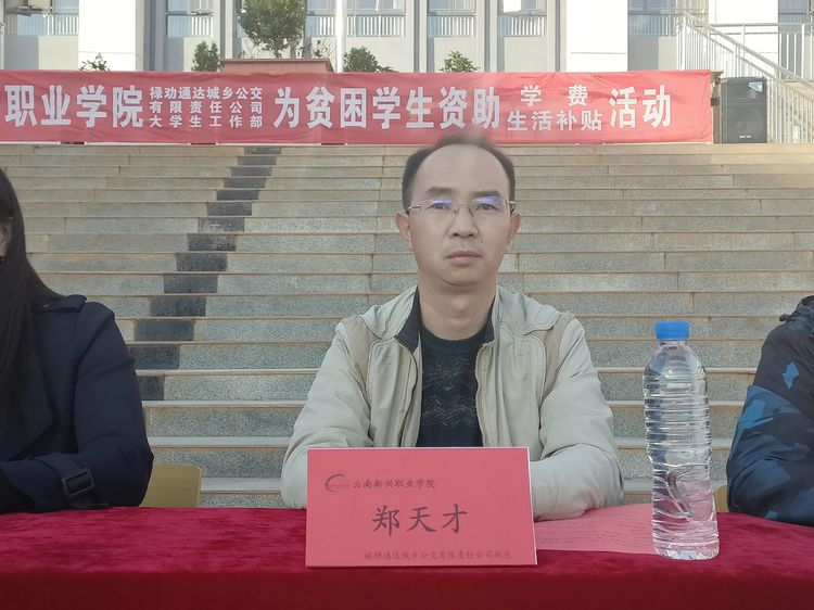 禄劝通达城乡公交有限责任公司副总经理郑天才发表了热情洋溢的讲话。他简单介绍了禄劝通达城乡公交有限责任公司,2008年由昆明交运集团禄劝汽车运输有限公司主导,通过整合禄劝县境内在营的六家私营客运企业而成立,公司组织机构健全,领导班子齐备,共有职工30人,经营管理城乡公交及农村客运车辆348辆(其中城乡公交车169辆,农村客运微型车179辆。),开通了禄劝县内、县际客运线路51条,农村客运车辆途径县内160个行政村,实现了“村村通车”目标。公司以促进禄劝城乡公交一体化发展为己任,积极为广大人民群众安全、快捷出行提供优质的公交客运服务社会。他希望受到爱心生活补贴的同学要珍惜来之不易的机会,将爱心补助金用到改善学习和生活上,要知恩图报,好好学习,努力上进,用优秀的成绩来回报社会,回报祖国,将来做个有用的人。