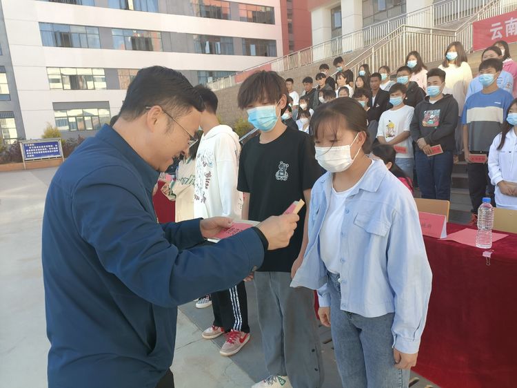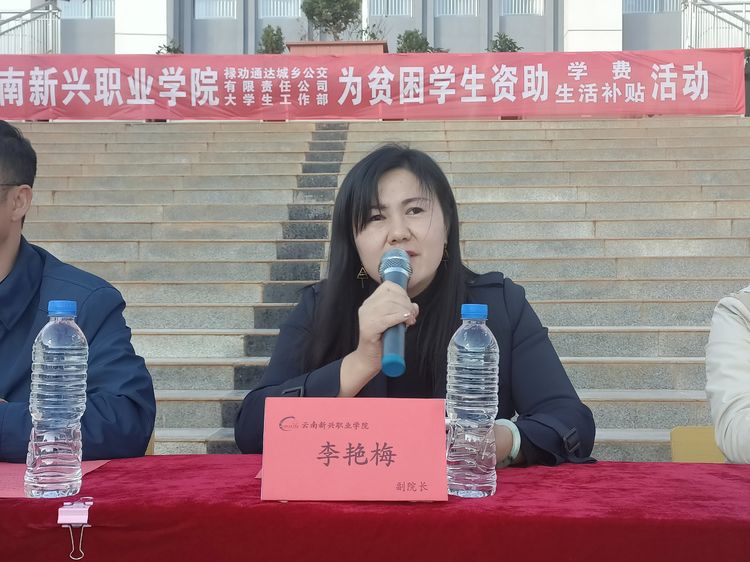 2021年11月11日下午4:30,beat365正版唯一官网必一仁德楼前广场人声鼎沸,伴随着《爱的奉献》音乐,各班学生代表集聚在此,隆重举行了“爱心圆梦 阳光助学”贫困学生爱心助学活动。在庄严的《中华人民共和国国歌》声中活动开始,主持人介绍了参加活动的领导,禄劝通达城乡公交有限责任公司副总经理郑天才、禄劝通达城乡公交有限责任公司张剑、beat365正版唯一官网必一李地新常务副校长、潘琼副校长、李艳梅副校长、董事长助理监察处长高大鹏、办公室主任李荣富、学生工作部武正文部长、胡东副部、和德林副部长、教务处张如银常务副处长及学工部各年级组长。
