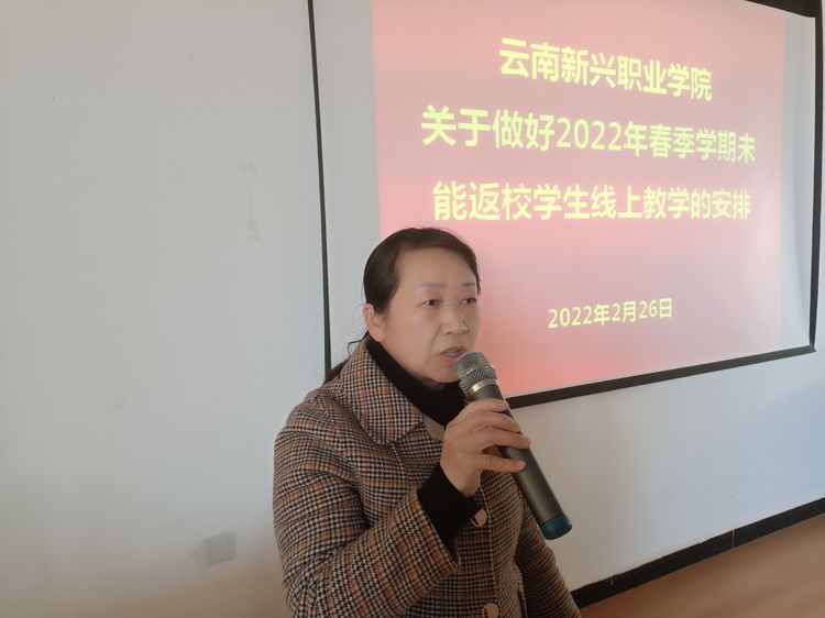 潘副校长对线上教学提出了明确的要求,教务处、各二级学院、等部门要认真落实学校新职院〔2022〕16号文件精神,压实主体责任,发挥教师主观能动性,教师要做到态度端正、过程认真,确保线上教学取得良好效果,确保“平安开学、开学平安”,以教学工作高质量发展助推学校的高速发展。