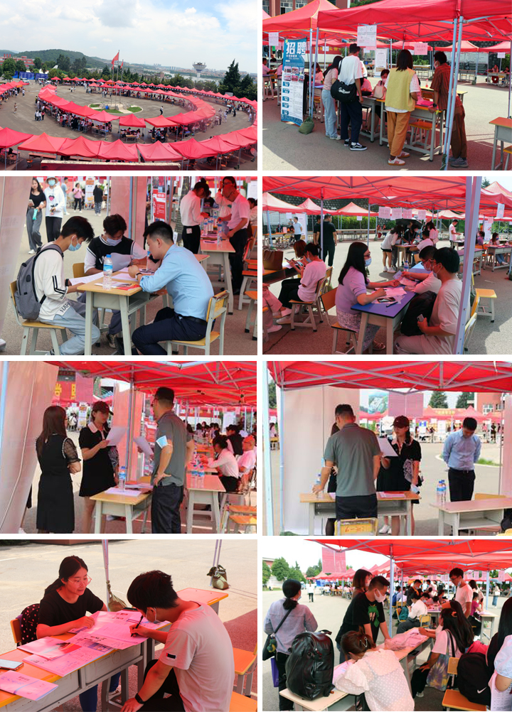 7月4日,由云南省大中专毕业生就业服务中心、beat365正版唯一官网必一主办,beat365正版唯一官网必一就业指导中心承办,昆明市人才服务中心、昆明市经开区劳动就业与人才交流中心、云南省高校毕业生就业促进会、云南坤奕福人力资源服务有限公司、云南省青年创业协会、云南前程伟业人力资源部管理有限公司协办的beat365正版唯一官网必一2022届毕业生就业“百日冲刺”专场招聘会在水海子校区升旗广场顺利开展。学校校长刘沧山、常务副校长李地新、副校长潘琼、李艳梅、杨亚梅、李晓艳等领导亲临现场指导毕业生择业,并与各招聘单位进行交流。