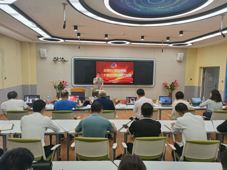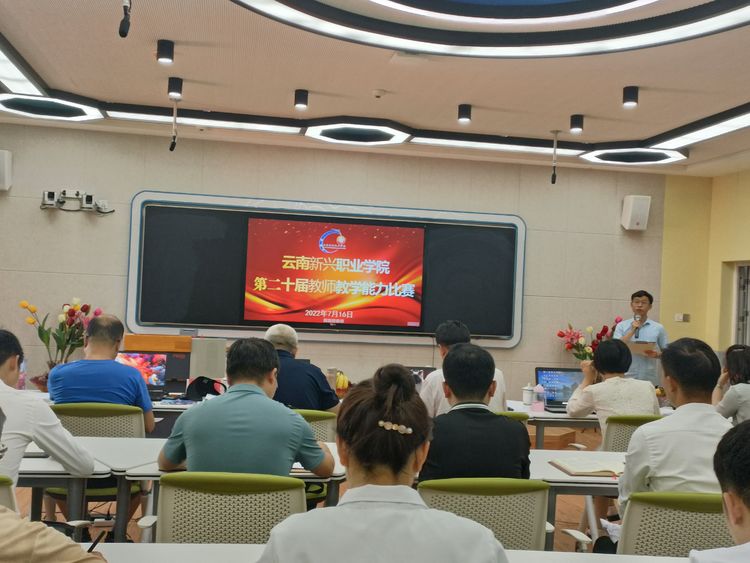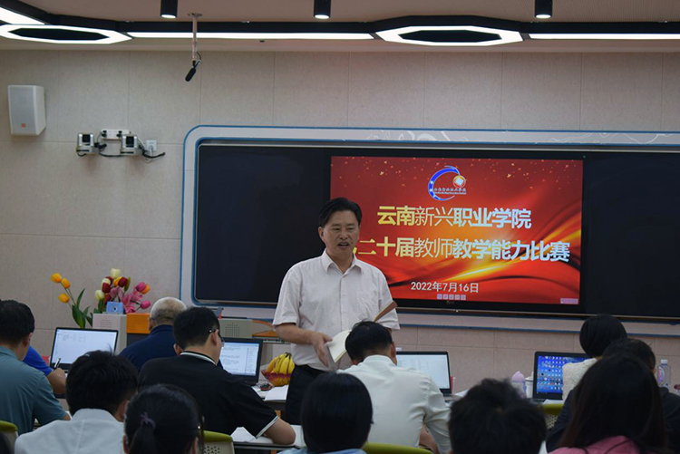 为了全面贯彻习近平总书记关于教育工作的重要论述与全国及云南省职业教育大会精神,落实立德树人根本任务,推动学校“三教”改革和“三风”建设,提升beat365教师教学能力,打造高水平结构化教师教学创新团队。根据《国家职业教育改革实施方案》《深化新时代职业教育“双师型”教师队伍建设改革实施方案》《职业教育提质培优行动计划(2020—2023年)》等文件精神要求,2022年7月16日,由学校教学部门组织,教务处承办的“beat365正版唯一官网必一第二十届教师教学能力比赛决赛”在新校区10栋601智慧教室举行。本次比赛共有28支团队参赛,经过初赛,推荐17支团队进入了决赛。决赛由学校教务副处长王雄主持。