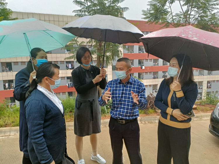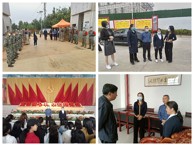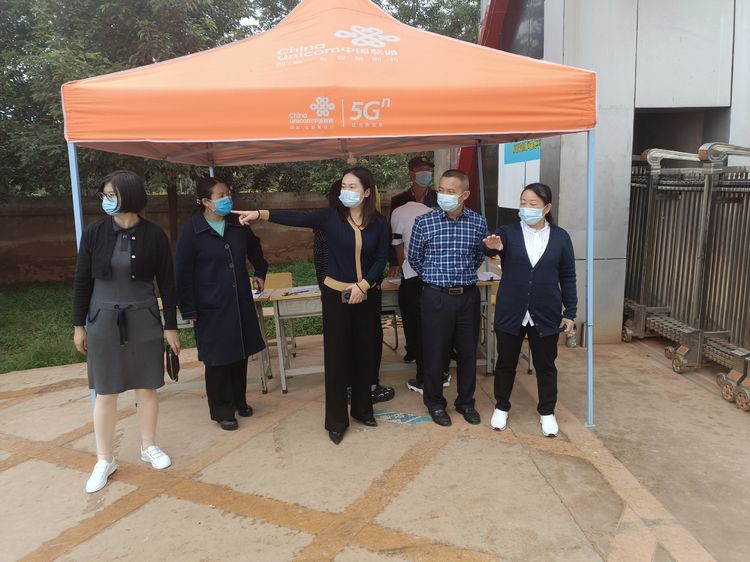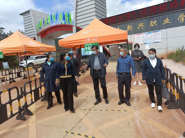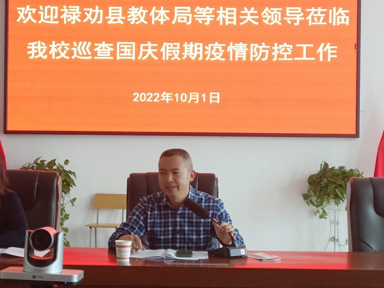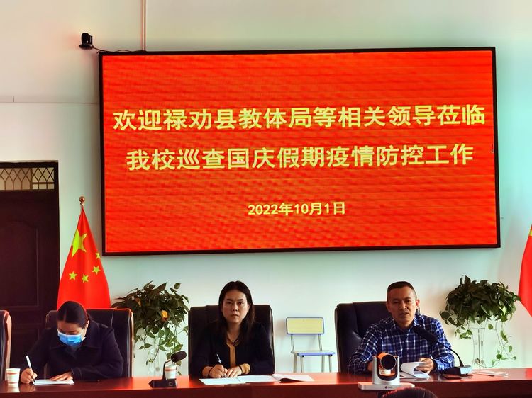 为切实做好国庆节放假期间学校的疫情防控工作。10月1日上午,禄劝县委常委、统战部长康怡、县政协副主席、教体局局长张国华、教体局体育卫生科主任潘桂丽一行莅临beat365禄劝校区检查指导疫情防控工作,beat365校长刘沧山、副校长潘琼、组织部长孙克松、党政办主任李荣富、宣传部长李汉雄、党政办副主任张元喜及部分在校中层领导陪同检查。