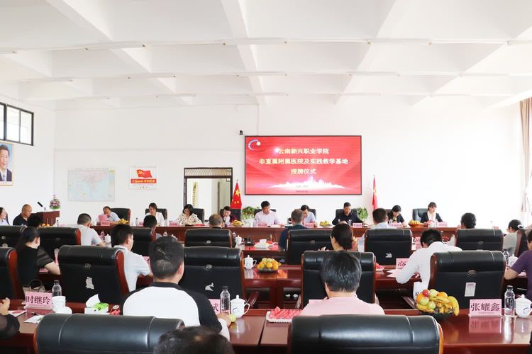 潘琼副校长总结时指出,职业教育发展到今天不只是职业院校自己的事,直接关乎到各企事业单位选人用人的大事,学校举行的非直属附属医院及实践教学基地授牌仪式是在专业申报的基础上,进一步深化产教融合,推进现代学徒制人才培养,推动学校高质量发展的重要举措,希望各合作企业在今后的发展中能够一日既往的关心和支持学校发展,与学校构建命运共同体,同呼吸、共命运,同心同德,共促发展,助力云南省职业教育的高质量发展和学校的跨越式发展。