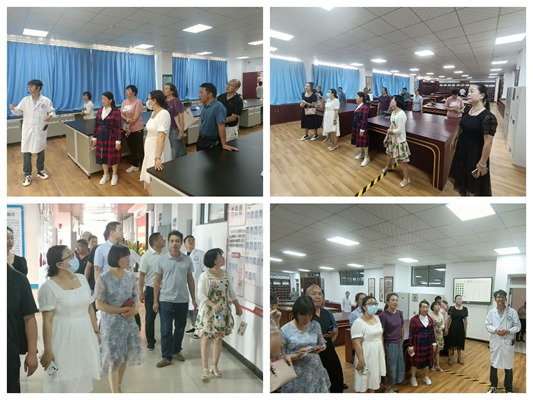 在药学院,领导们参观了中医房和中药标本室及实训室,实训设备等,实验中心主任李建强给大家进行了一一介绍,领导们对beat365药学院的实验、实训基地建设赞不绝口。