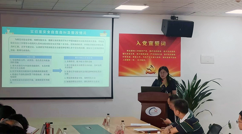 李艳梅副校长从实验室建设情况、实验室安全自查自纠及整改情况、实验室安全建设情况、存在问题及整改措施汇报了学校实验室安全工作情况。