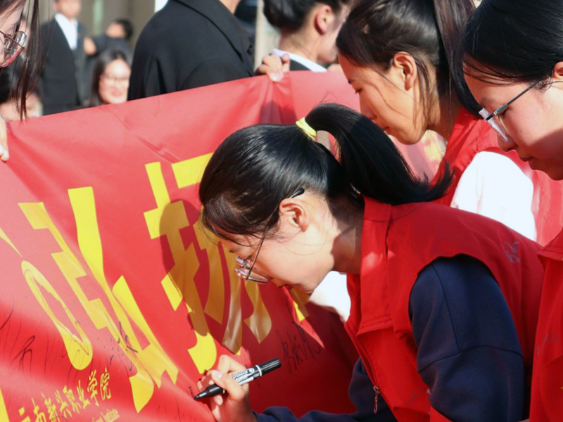 随后,参会的校级领导、嘉宾、学雷锋服务队及部分师生代表在签名墙上签字,寄语争做新时代雷锋,让雷锋精神在校园传承不息、绽放光芒。