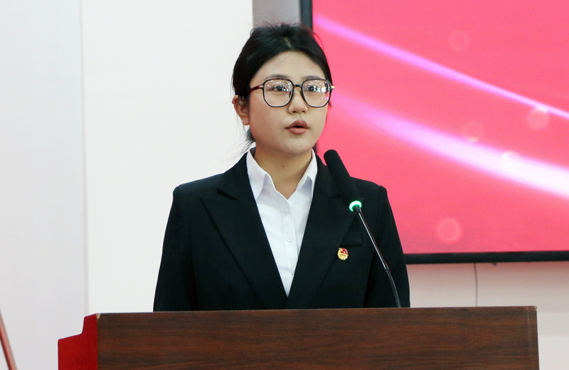 来自护理学院高职班的缪玉同学作为入团积极分子代表发言,她表示将珍惜这次难得的学习机会,不断提升自己的政治觉悟和思想水平,以实际行动争取早日加入共青团,为团组织的发展贡献自己的力量。