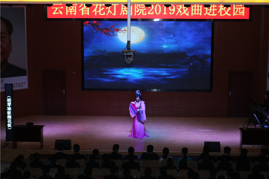 戏曲艺术走进校园,中国戏剧梅花奖得主李丹瑜,将一人分饰四角----西施、貂蝉、昭君、杨贵妃,用花灯、滇剧、昆曲、京剧娓娓道来一曲美人离歌,诠释她们如歌如泣的人物命运和家国情怀。