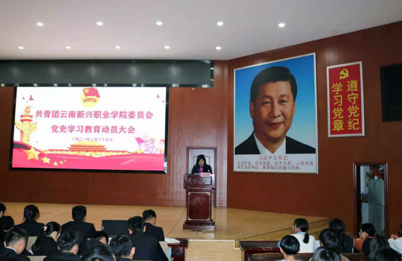 会上李艳梅副院长作了动员讲话,她提出要提高政治站位,深刻认识开展党史学习教育的重大意义;要确保学习实效,准确把握党史学习教育的目标要求;要突出学习重点,牢牢掌握六方面学习内容;要注重特色挖掘,扎实推进学校立德树人根本任务提升质量;要加强组织领导,高标准高质量完成党史学习教育各项任务。她的讲话进一步统一了思想、统一了行动,为扎扎实实开展好党史学习教育做出了指导性意见。随后团委书记孙超同志向与会人员传达了《共青团云南省委关于开展“学党史、强信念、跟党走”学习教育的通知》云青通[2021]9号文件精神。接着指导教师张雪峰老师宣读了《共青团beat365正版唯一官网必一委员会关于开展“学党史、强信念、跟党走”学习教育的通知》云新团〔2021〕4号文件,为beat365共青团员及青年干部开展党史学习做了具体工作部署。
