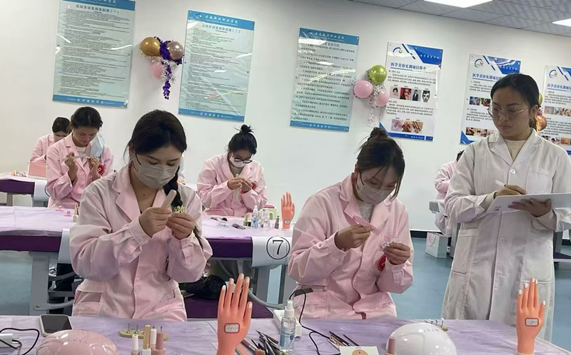 此次美甲技能大赛以美甲构图、技巧、用色等美甲技能为竞赛点。每位参赛选手都沉着冷静,有条不紊,以最好的精神面貌展示出个人的实力,通过与其他选手的交流和竞争,学生们看到了自己的不足之处,激发了学习的动力和热情。同时,比赛的经历也为学生们未来的职业生涯打下了坚实的基础,使他们在就业市场中更具竞争力。