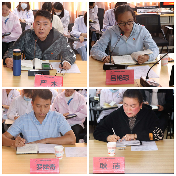 杨炳金副院长发言:一是教师的意识形态,向党积极靠拢;二是提高教师的团队协作精神和执行力;三是培养教师教学能力;四是学生课堂,老师要管,还必须管好;五是教研室主任要帮助科任教师用心做事。