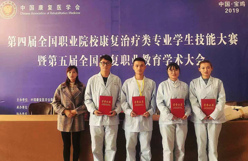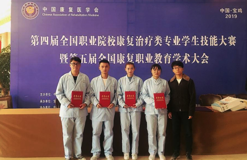 10月25日-27日,由中国康复医学会康复医学教育专业委员会主办,宝鸡职业技术学院承办,全国卫生职业教育教学指导委员会康复治疗类专委会、中国康复医学会物理治疗专业委员会、中国康复医学会作业治疗专业委员会、宝鸡市医学会物理医学与理疗学分委会协办的第四届全国职业院校康复治疗类专业学生技能大赛在陕西宝鸡职业技术学院举行,来自全国23个省、自治区、直辖市71所高职高专院校的271名选手参加了比赛。beat365医学康复学院教师陈雪飞、刘洪艳带领2017级高职康复治疗技术专业王可、赵志辉、何聂荣、张继春四名同学参加比赛。